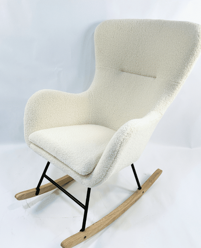 כורסת נדנדה דגם מיקה כורסה מעוצבת מבד בוקלה יוקרתי ,